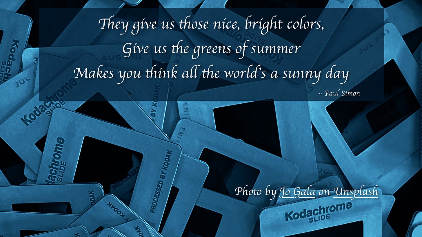 There's another line in the song, "everything looks worse in black and white." Simon habitually changes this to "better" when he performs live and says he doesn't remember which way he originally wrote it. But Kodachrome's advertising hinged on getting people to buy more expensive color positive film over cheaper black-and-white negative film, so I suspect it was the album version.