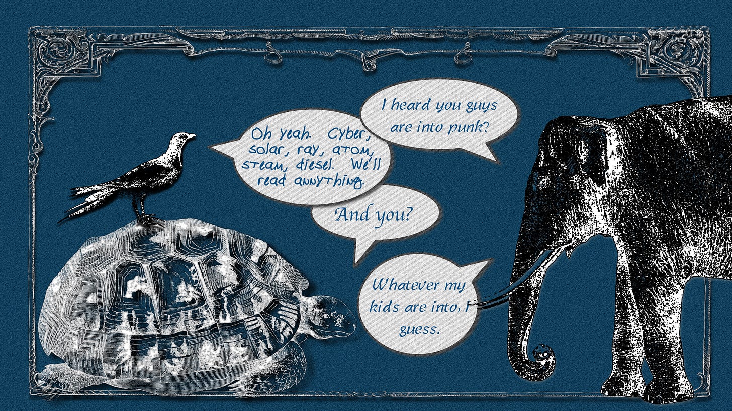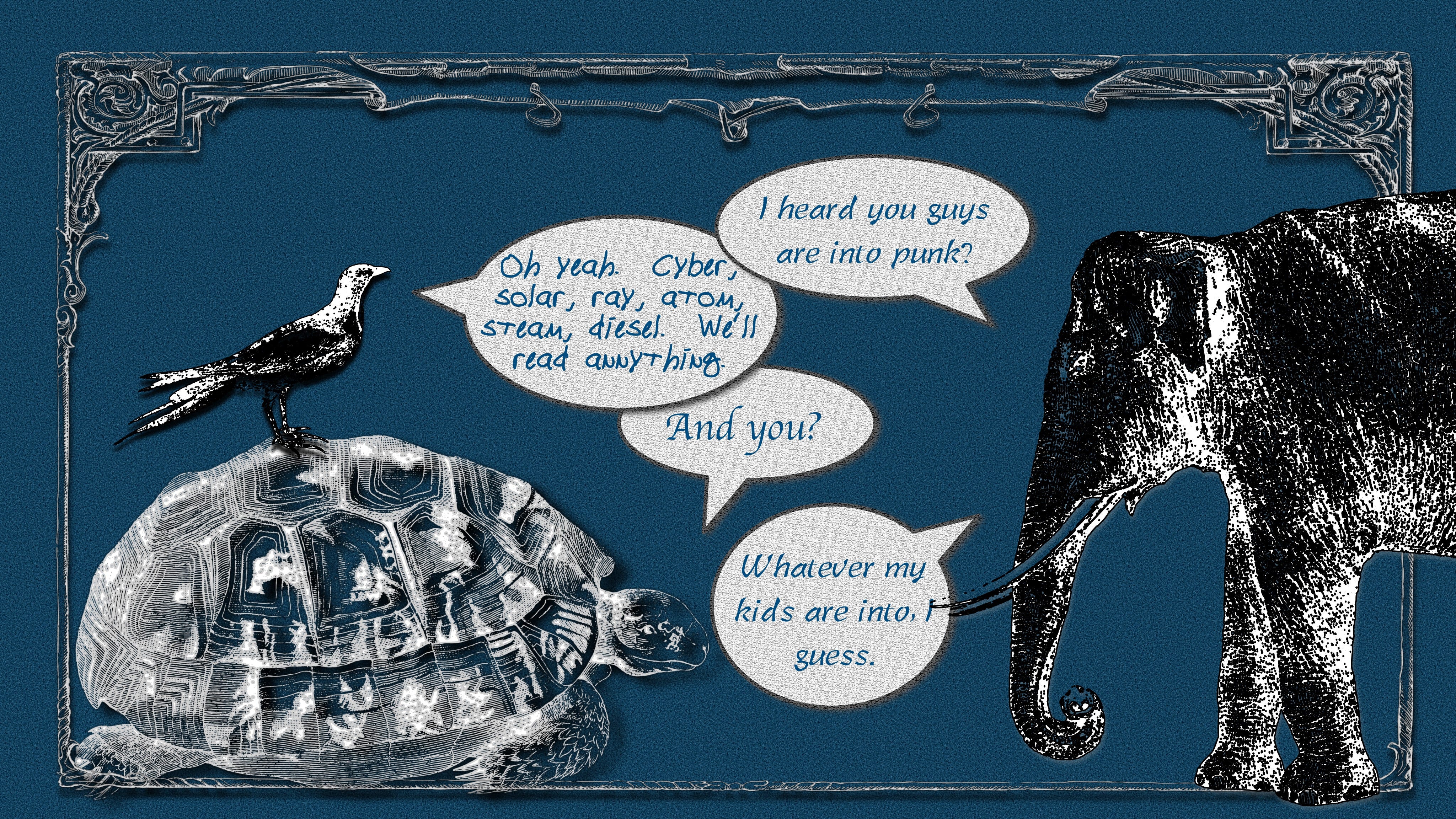 From there, things kind of spiraled. Cyberpunk was followed by Steampunk in the mid-80s, and this set the pattern for the next several decades of science-fiction subgenres. Is your story full of post-industrial but pre-digital technology? Dieselpunk. Is your tech green, renewable, and used to to power a future city? Solarpunk. And so on and so forth. In fact, if you want yet another rabbit hole to disappear down, Wikipedia's list of cyberpunk derivatives will keep you up at night.