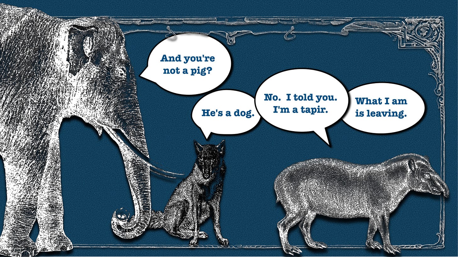 That's my daughter wondering, rightly, why in the world I would refer to our ten-year old German Shepherd and Shiba Inu mix as a pig, when clearly, she is a dog1. And the answer is...I'm not? Only, I guess I am?